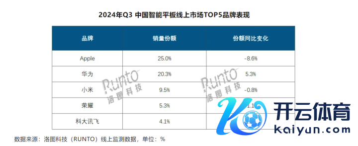 尊龙凯时体育智能平板线上商场销量前四名为苹果、华为、小米和荣耀-尊龙凯龙时「中国」官方网站