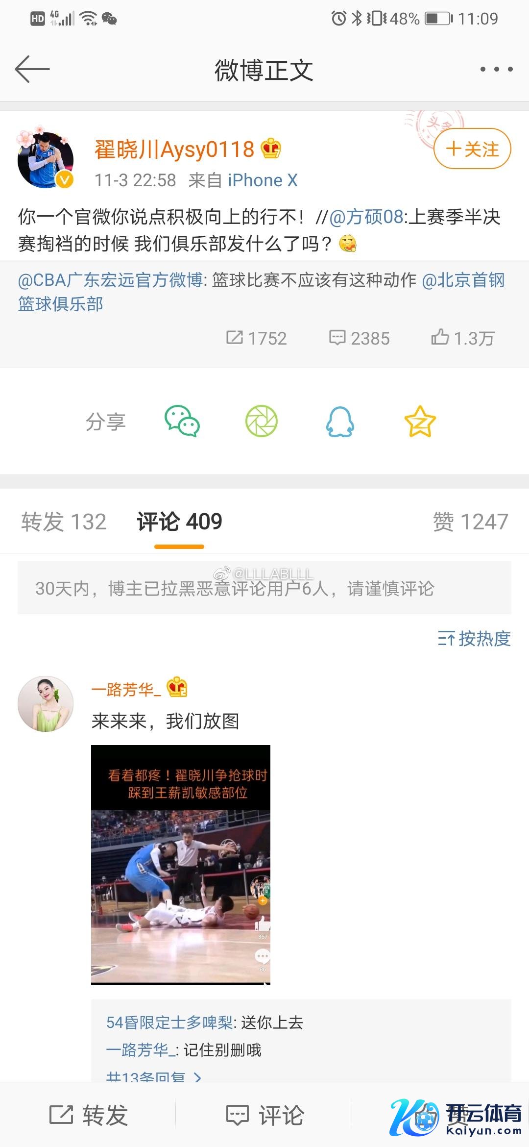 赛后方硕和翟晓川站出来力挺好哥们儿王骁辉,不外翟晓川的伤东说念主旧账被广东球迷给翻了出来,2020年季后赛半决赛,翟晓川在球权拼抢中使出了一招断子绝孙脚击中了王薪凯的下体部位,这一脚看似有益实则筹画而为,不外当值裁判却默认了翟晓川的下黑脚活动。