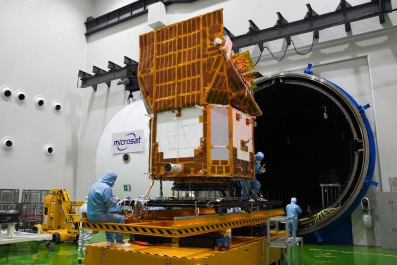 2023年7月20日,科研东谈主员在作念爱因斯坦探针卫星的热教化。新华社发(中国科学院狭窄卫星翻新磋商院供图)