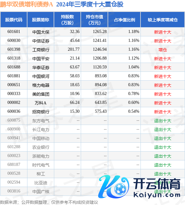 鹏华双债增利债券A为债券型-夹杂二级基金,字据最新一期基金季报暴露,该基金财富成就:股票占净值比20.27%,债券占净值比96.06%,现款占净值比10.49%。基金十大重仓股如下: