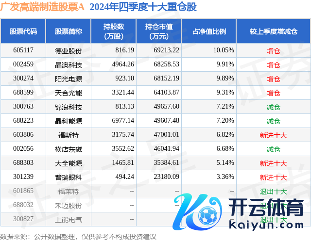 广发高端制造股票A为股票型基金,把柄最新一期基金季报潜入,该基金金钱树立:股票占净值比93.27%,债券占净值比2.9%,现款占净值比4.4%。基金十大重仓股如下: